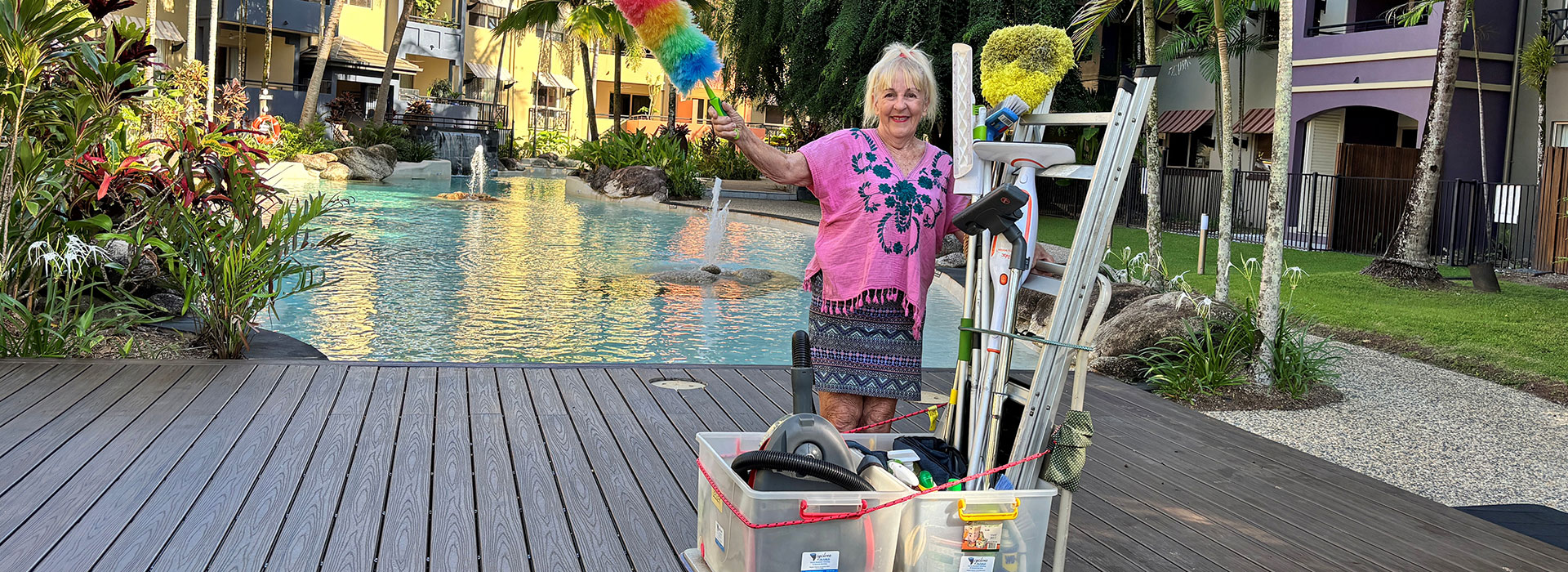 Cyclone Nana’s Cairns cleaning services and general domestic help services can be booked by home owners, landlords and/or tenants. Work is guaranteed: Cyclone Nana has a keen eye and fastidious attention to detail. She also has a Blue Card and full insurance, for your peace of mind.